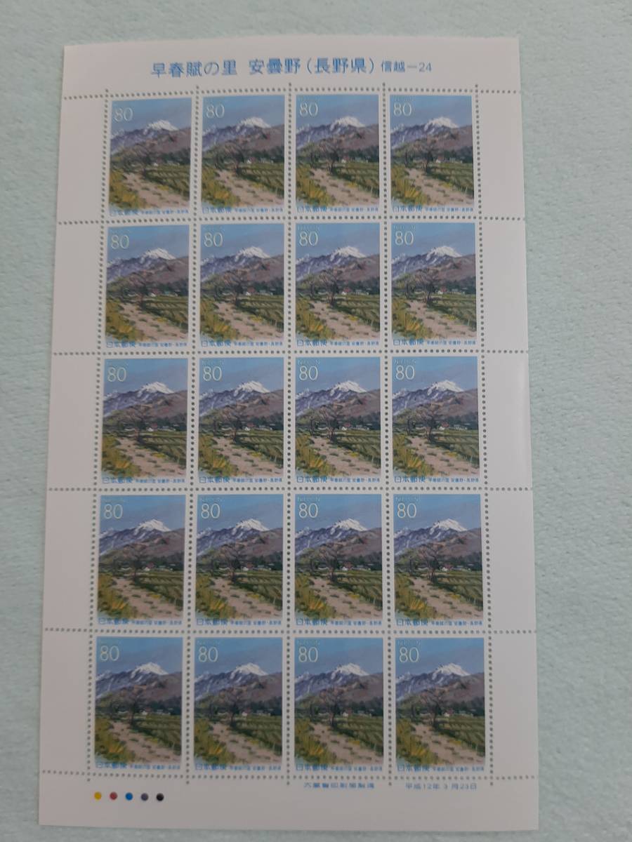 ふるさと切手 早春賦の里 安曇野(長野県)信越-24 H12 切手シート1枚と10枚シート