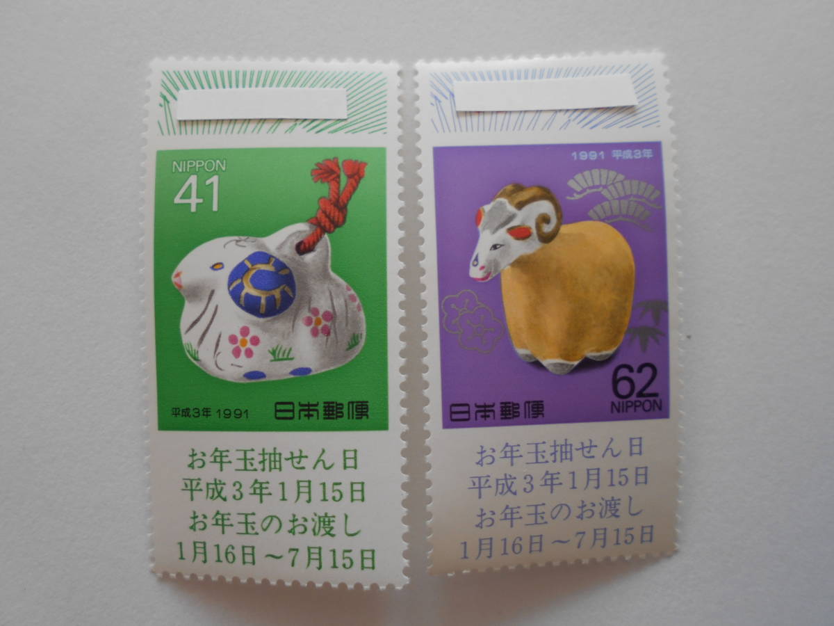 - 1991年用くじ付き年賀切手 ひつじ 未使用41円62円切手