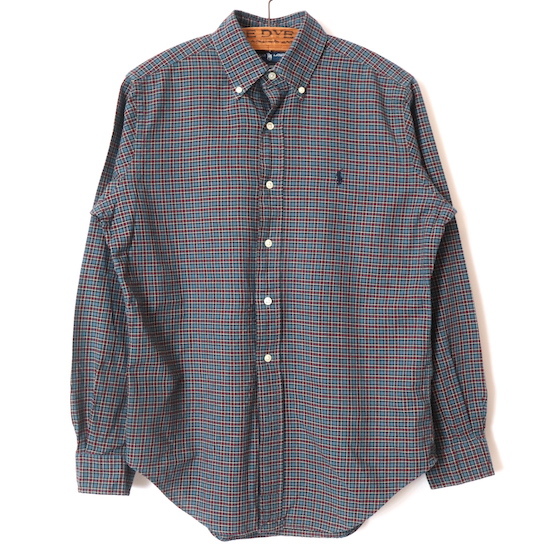 - RALPH LAUREN■コットンチェックBDシャツ グレーブルー/S ラルフローレン