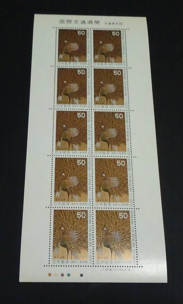 - 1975年・特殊切手-国際文通週間シート(孔雀葵花図)