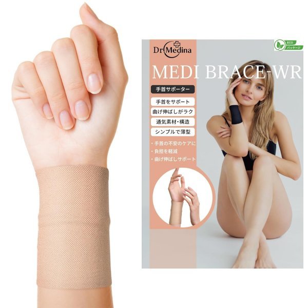 > Dr.Medina 手首サポーター 手首用サポーター 2枚組 左右兼用 手首 サポーター 薄手 女性用 レディース MEDI BRACE-WR 肌色 ベージュ L 23