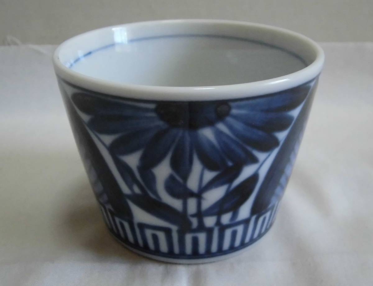 - 蕎麦猪口 花柄 染付 湯呑み茶碗 工芸品 茶器 陶器 レトロ