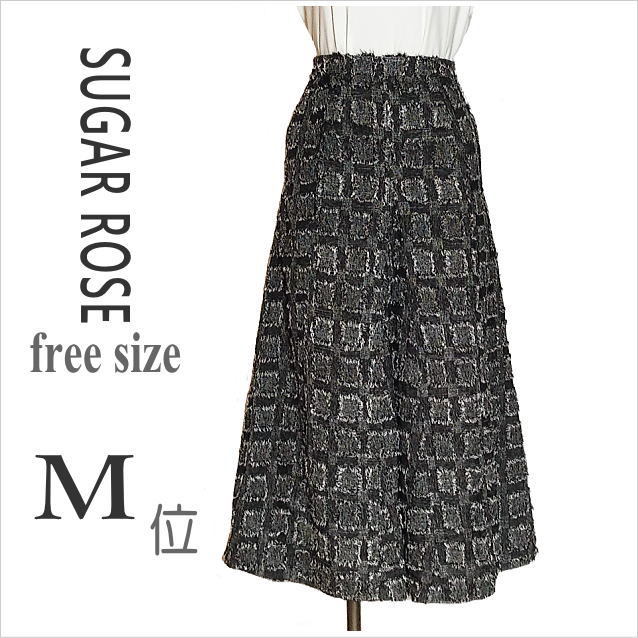 > [SUGAR ROSE]黒白織り込み調総柄ロングスカート フレア お洒落 シュガーローズ フリー M位 ◎送料込み