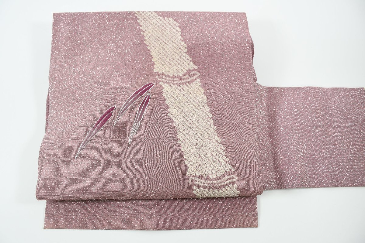 > 名古屋帯 銀糸 竹 絞り 帯丈338cm ★着物屋 ne-7688 桜庭呉服店