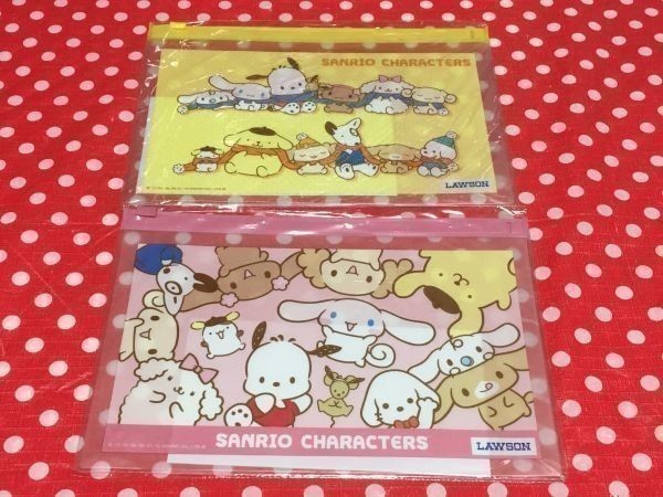 > ゆうmini◆ サンリオ 犬キャラクター スライダーポーチ 2種セット ローソン 非売品 ポチャッコ シナモロール ポムポムプリン マフィン