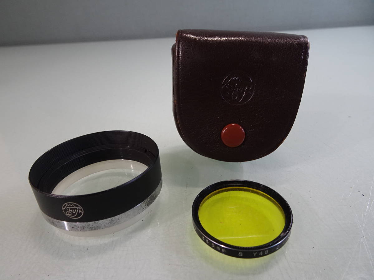 - Fuji/フジ レンズフード 日本製 45mm用 スチール製 革製 中古+黄色フィルターはオマケ