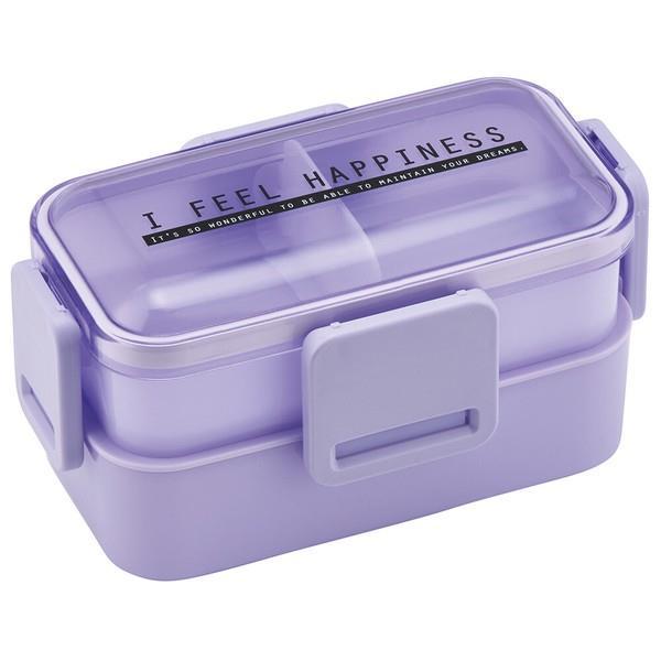 - 2段ふわっと弁当箱 600ml ランチボックス 抗菌 食洗機対応 シースルーカラー ペールラベンダー スケーター