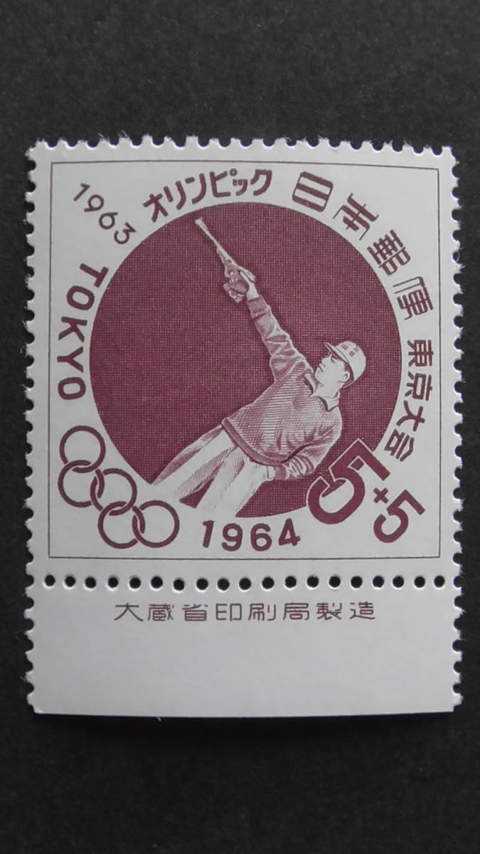 - 記念切手 東京オリンピック募金 第5次・射撃 5+5円 大蔵省銘版付