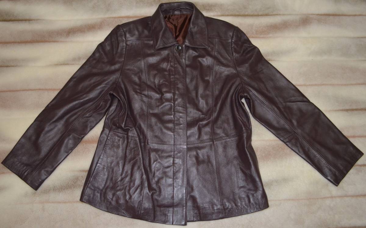 - 02【中古美品】*frohlich フローリッチ 羊革ジャンパー L ダークブラウン ボタンダウン 裏地付 革ジャン 送料無料