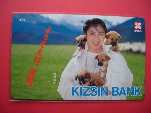 - 西村知美 木津 信用組合 きづしん 子犬5匹 未使用テレカ