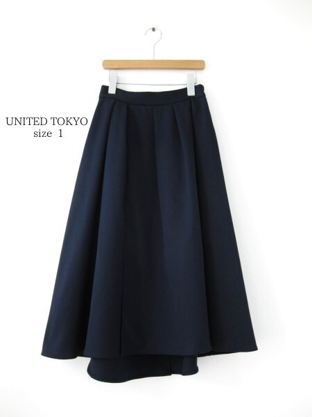 - 送料込☆UNITED TOKYO☆ロングスカート☆NAVY☆1(M)☆ひざ下寸☆ウエストゴム☆サイドZIP☆ゆったりスタイル☆ユナイテッドトウキョウ