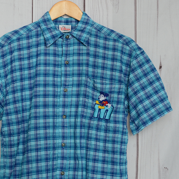 - AA5376 ディズニー DISNEY 半袖シャツ XS 肩幅48 ミッキー 格子柄 メール便可 xq