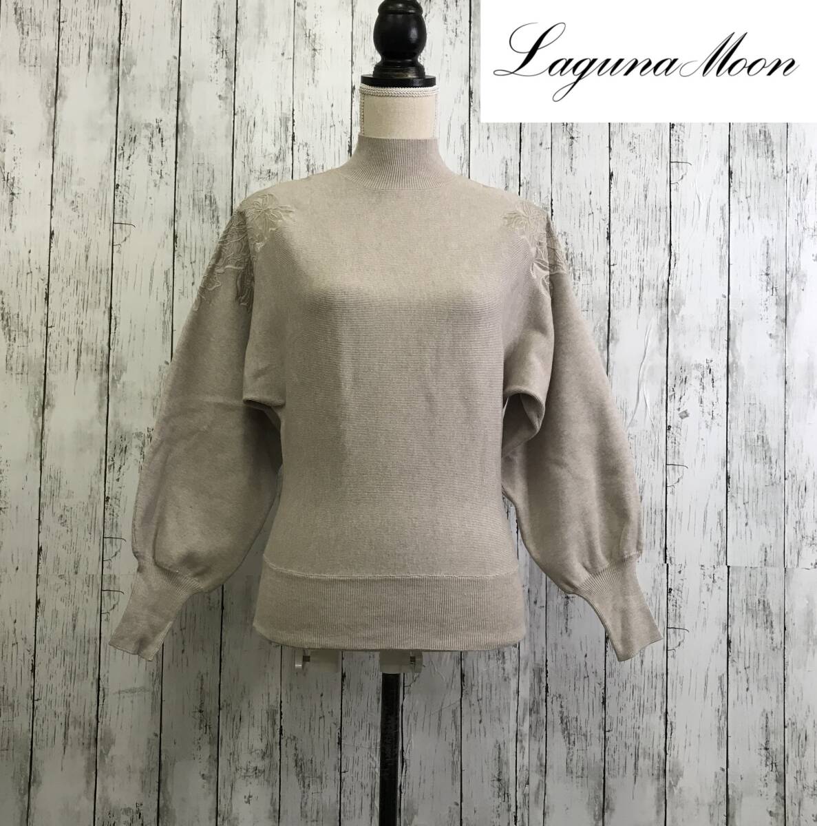 - LAGUNAMOON ラグナムーン ショルダーエンブロイダリーニットプルオーバー Fサイズ ベージュ 程よい透け感の肌見せ S5.5-54 USED
