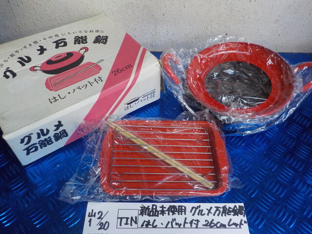 - TIN●○新品未使用 グルメ万能鍋 はし バット付き 26cm レッド 6-2/19(も)