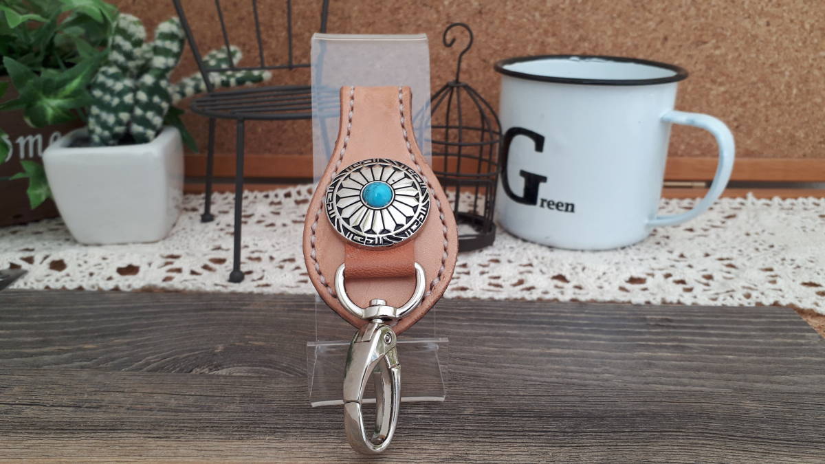 - 送料込)ベルトループキーホルダー☆栃木サドルレザーナチュラル ターコイズ風B/ハンドメイドレザー