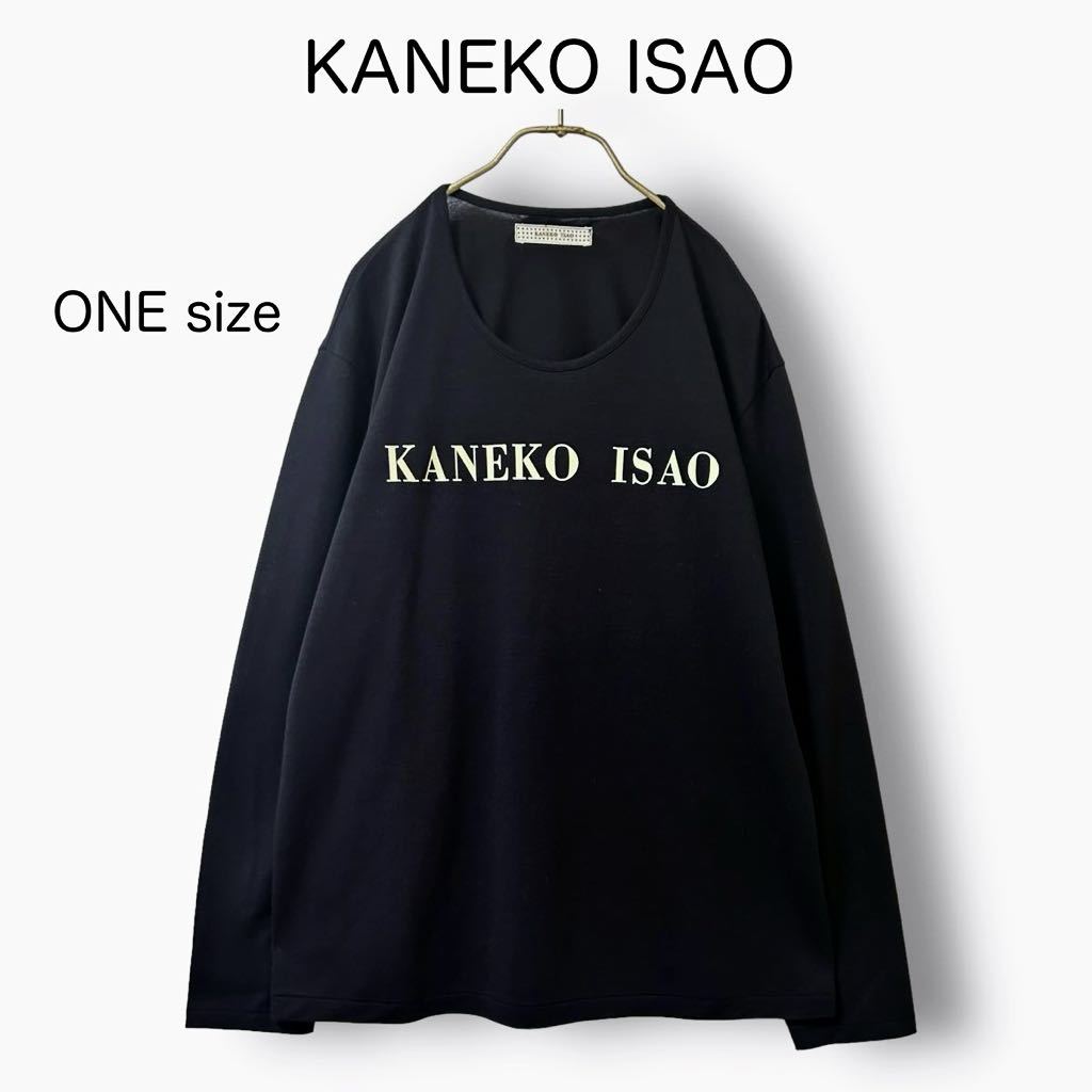 > 1344 KANEKO ISAO*カネコイサオ*金子功 ロングTシャツ ロンT ロゴ入り ピコレース リボン ピンクハウス PINKHOUSE 黒 ブラック
