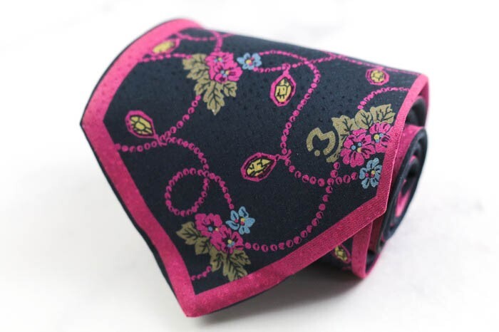 - ミラショーン シルク 花柄 ボタニカル柄 小紋柄 イタリア製 ブランド ネクタイ メンズ ブラック mila schon