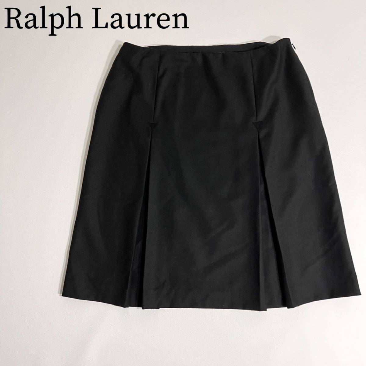 > 美品 Ralph Lauren ラルフローレン フレアスカート デザインスカート 膝丈 黒タグ 高級ライン カシミヤ混 レディース