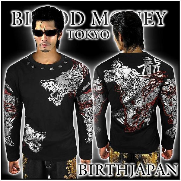> ロンT 長袖 Tシャツ ヤクザ オラオラ系 ヤンキー チンピラ メンズ 派手 ファッション 和柄 チョイワル 服 部屋着 快適 昇龍 12027 黒 銀