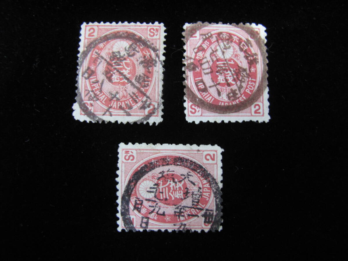 - 明治21年 22年 弐銭 2銭切手 消印 北海道 渡島 函館・後志 銭函・天塩 増毛 満月印 まとめ3枚