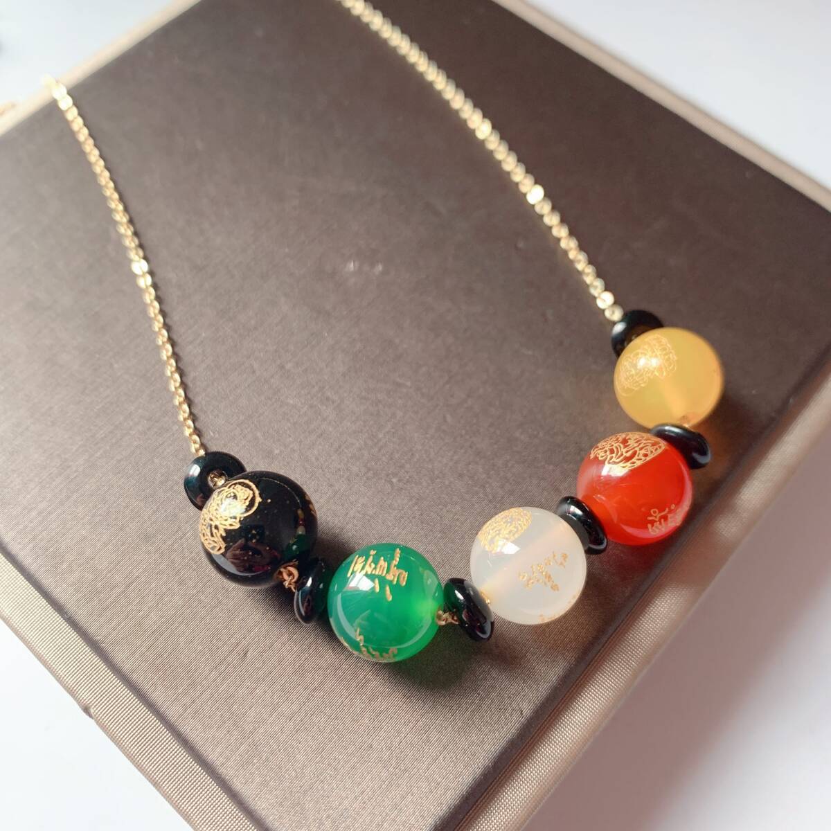 > ◇瑪瑙◇ネックレス◇ペンダント◇メノウ◇アゲート◇五路財神◇天然石◇パワーストーン◇巾着袋付き◇プレゼントにも 027P30109