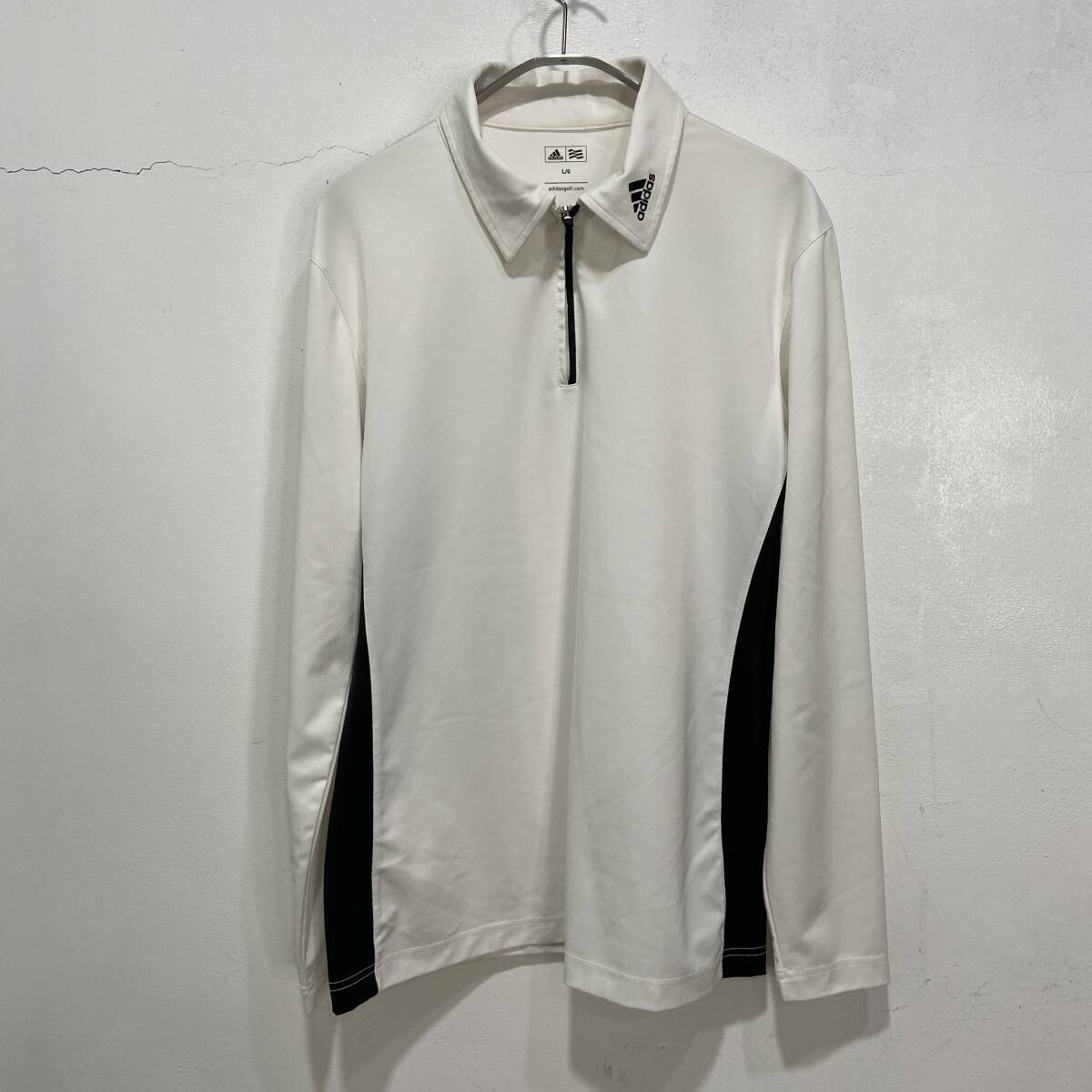- 送料無料☆adidas☆アディダスゴルフ☆ハーフジップカットソー☆パフォーマンスロゴ☆ワンポイント☆長袖☆ホワイト☆L☆B24M