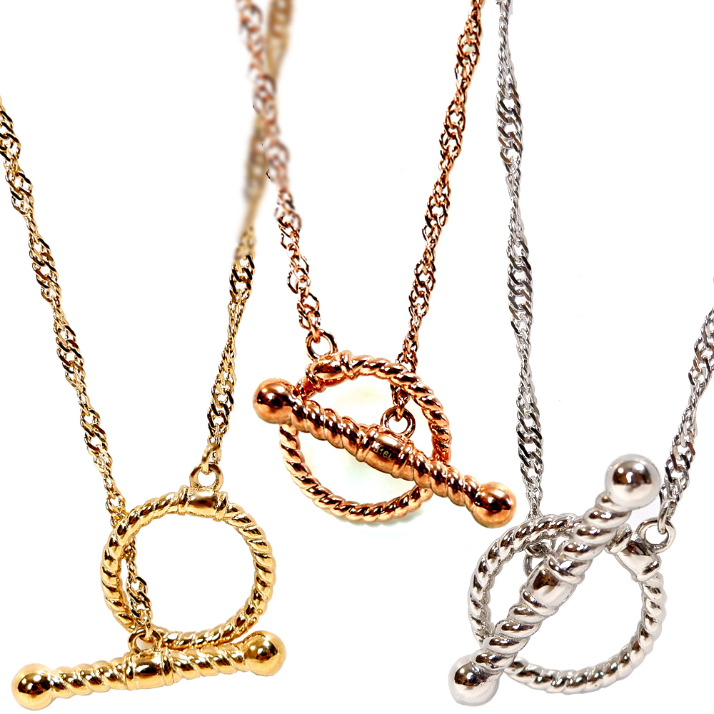 - ★ハワイアンジュエリー★アレルギー&海水浴&温泉OK★ステンレスツイストネックレス★Tバー&サークル&ピンクゴールド&ゴールド&シルバー★