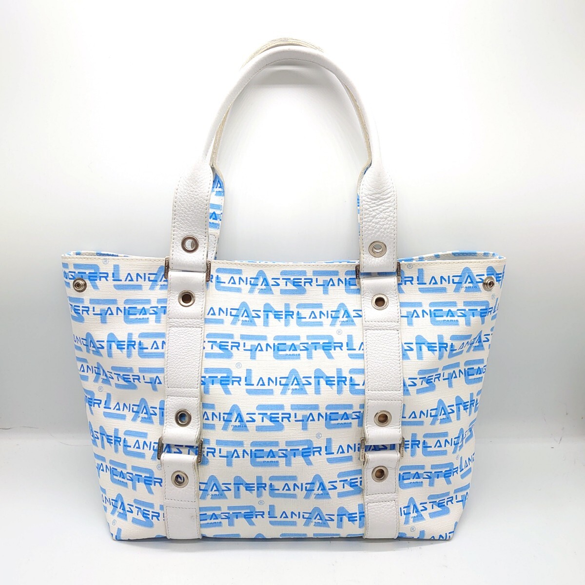 - LANCASTER PARIS ランカスター パリ レディース PVC レザー トートバッグ ハンドバッグ A4 収納 ホワイト ブルー ブランド ロゴ tp-24x192