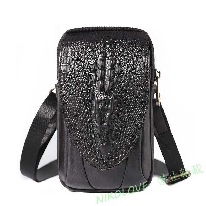 - 新品 ウエストバッグ ウエストポーチ 本革牛革 メンズベルトポーチ スマホポーチ ミニショルダーバッグ 黒AA605