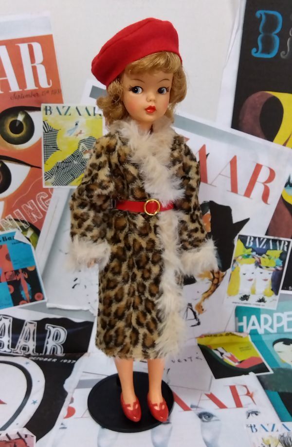 - Doll Dressing♪ハンドメイド タミーちゃんサイズお洋服セット人形/アウトフィット/衣装/ヒョウ柄コート/アウター/帽子/ドール服/ベルト赤