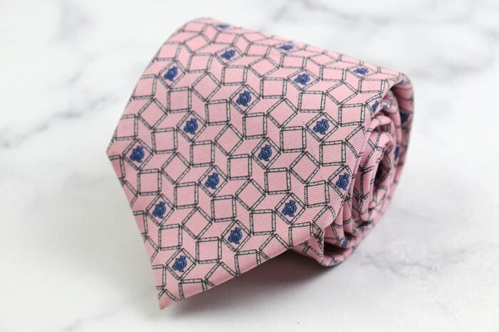 - ダンヒル シルク 格子柄 スクエア柄 小紋柄 イタリア製 ブランド ネクタイ メンズ ピンク dunhill