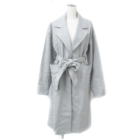 - ヘザー Heather チェスターコート ガウンコート ロング丈 リボン付き S 杢グレー /FF10 レディース