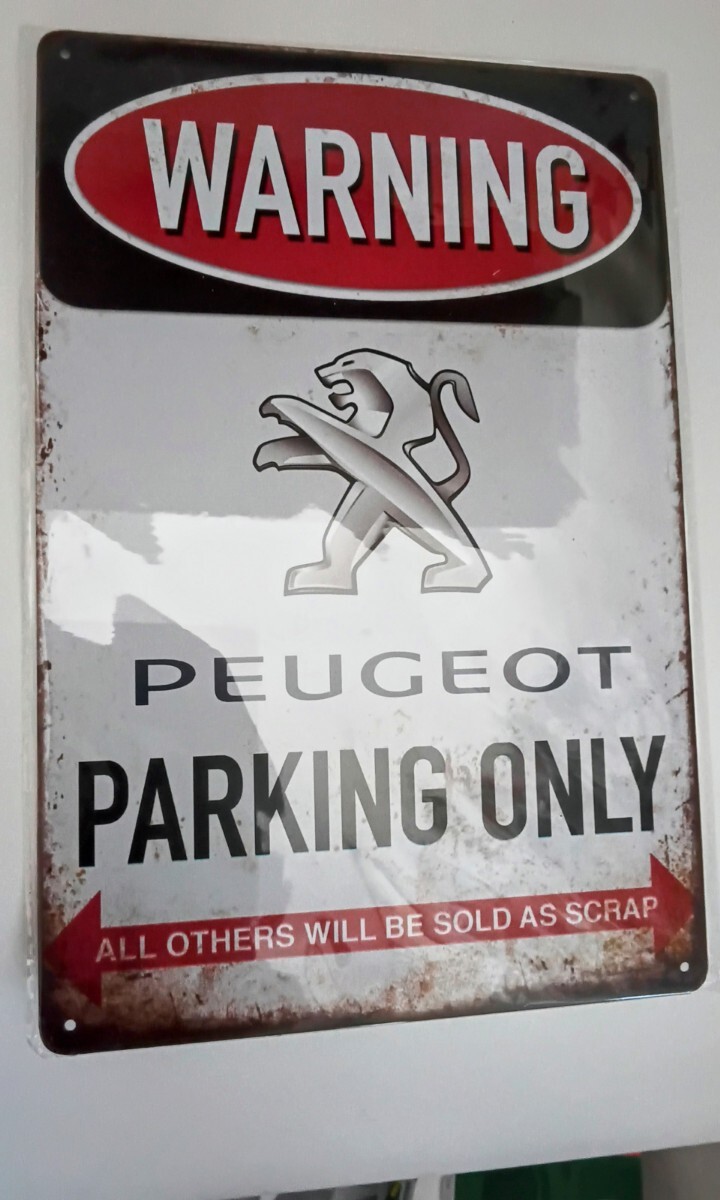 - 金属製看板 ガレージ アンティーク調 PARKING プジョー