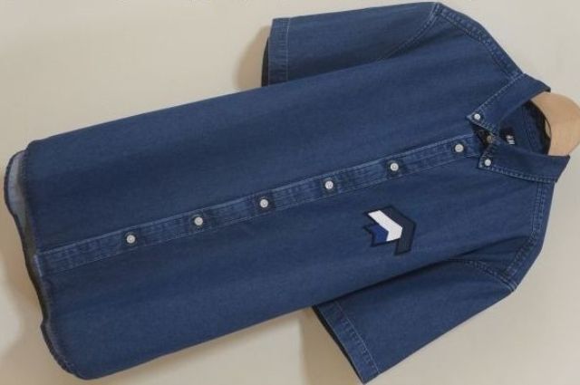 - A843 即決 H&M エイチアンドエム パッチ付き ユーズド加工 デニムシャツ US Mサイズ 175/100A 半袖 クリックポスト発送