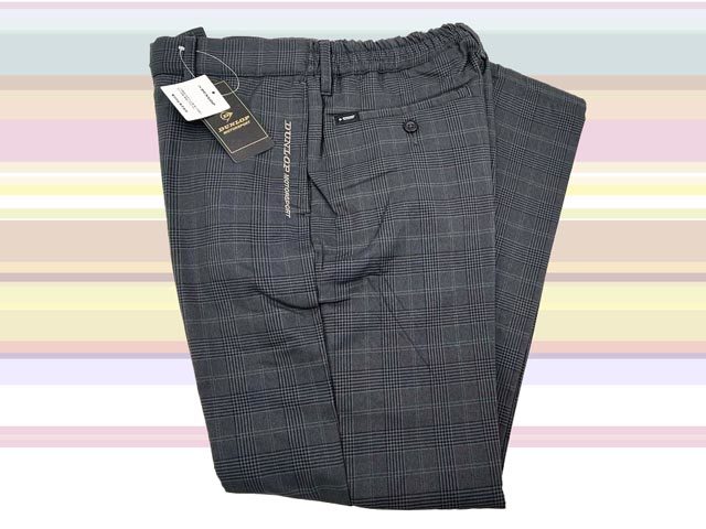 > 【送料無料】ダ051-957487-4-13■Mサイズ■股下70cm■グレーチェック■DUNLOP MOTORSPORT 暖か裏フリーススラックス センタープレス入り
