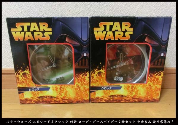 > ■スターウォーズ エピソード3 クロック 直径約16.5cm時計 ヨーダ・ダースベイダー 2種セット 中古良品 使用感薄め! 送料無料!
