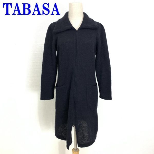 - タバサ ロングコート カーディガン ウール 黒 ブラックTABASA オープンファスナー 34 C8757