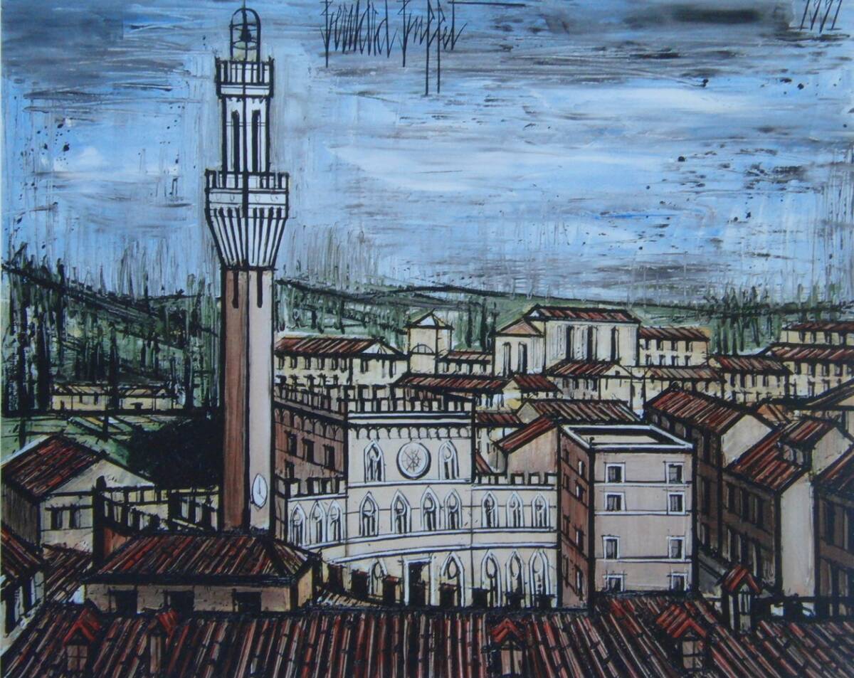 - ベルナール・ビュフェ「シエナ、公会堂」 希少画集・額装画、日本製新品額縁、状態良好、送料無料