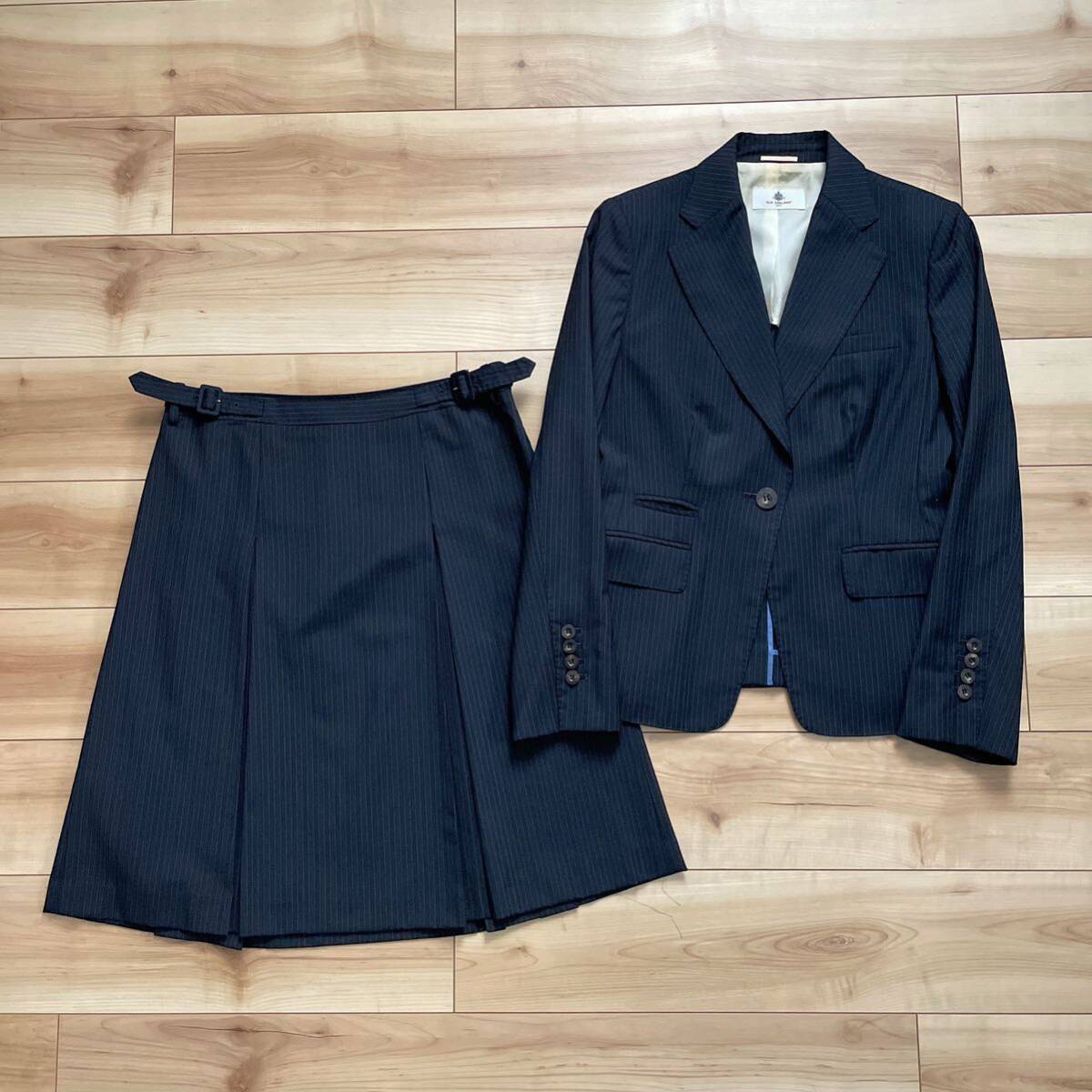 - 【送料無料】OLD ENGLAND オールドイングランド ストライプ スカートスーツ 黒 38 クリーニング済み♪