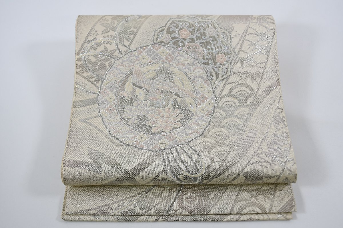 - 袋帯 手織錦 熨斗 鳥 銀糸 六通柄 帯丈429cm ★着物屋 ne-8729 桜庭呉服店