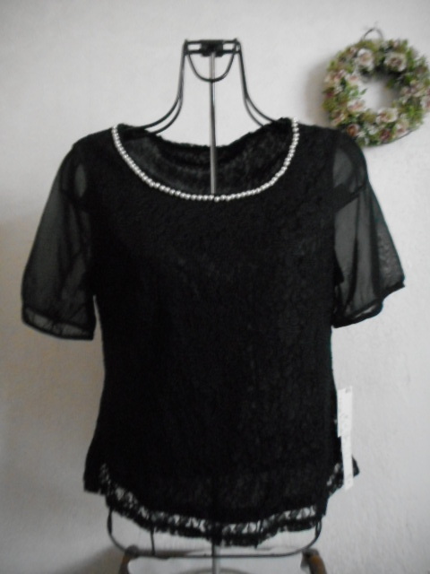 - タキヒョー パール飾り 黒レースブラウス フォーマルにも MASAKI MATSUSHIMA サイズM タグ付き未使用