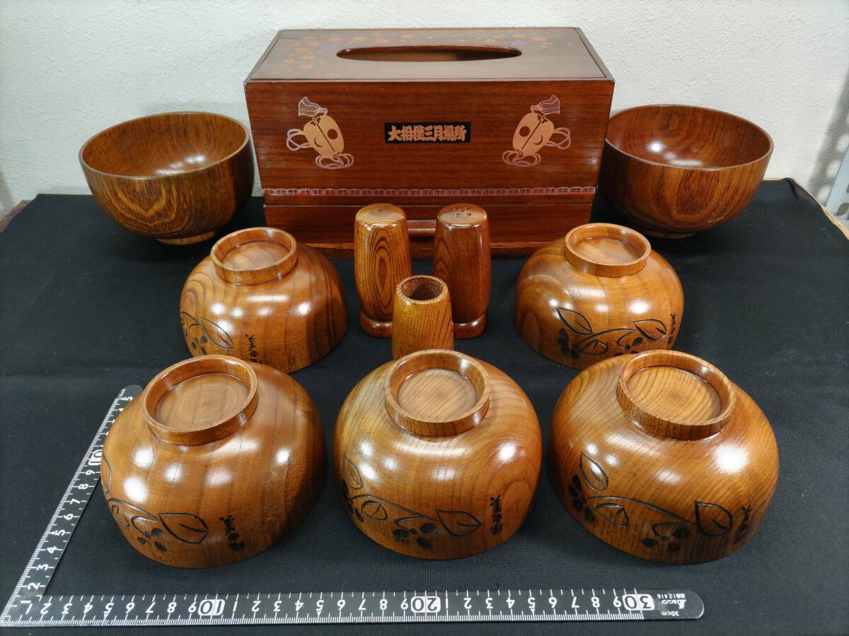 - ■送料無料!■まとめて■大相撲・ティッシュケース・BOX■桂由美・お椀■丼・汁椀■爪楊枝・調味料入れ■木製■11点セット!