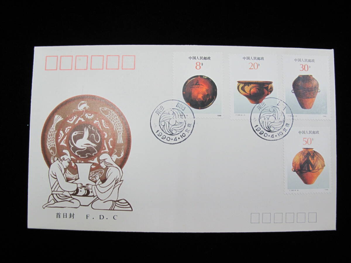 - 中国切手 FDC 1990年 T149 彩色陶器 4種完