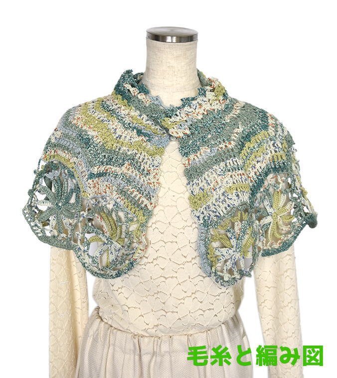 - 編み物キット ナイフメーラで編むお花モチーフの肩掛けケープ ストール 毛糸 ナスカ 無料編み図 合いもの コットン ウール 梅春 かぎ針編み