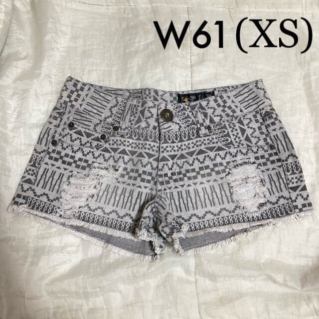 - 1回着新品同様☆デニムショートパンツ W61 XS ネイティブ柄