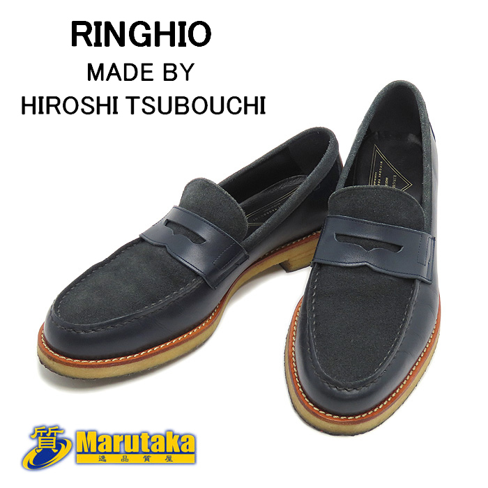 - 送料無料 リンギオ×ヒロシツボウチ 坪内浩 コインローファー ペニーローファー メンズ 8 ネイビー 逸品質屋 丸高 66-0300