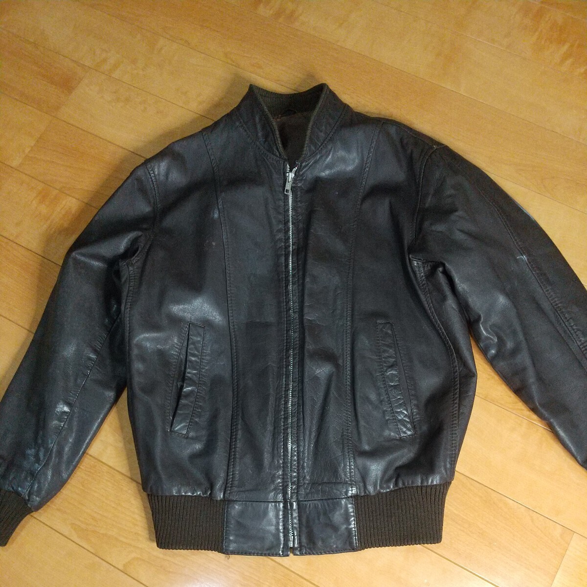 - 本革 レザージャケット 中古現状品 牛革 レザー ライダース ジャケット ジャンバー 革ジャン ブラウン 茶色