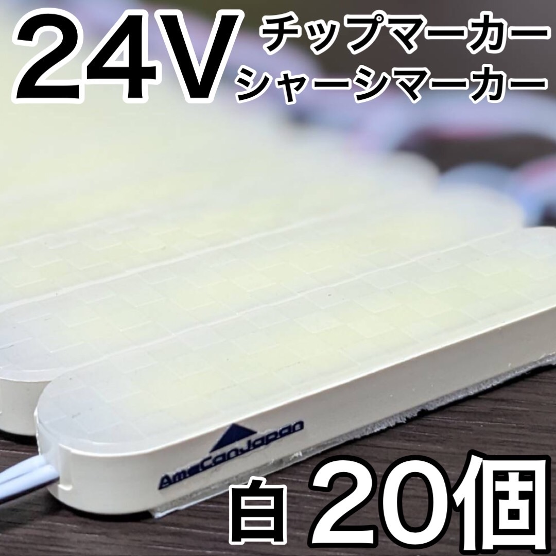 > 超爆光 24V LED ICチップ搭載 チップマーカー シャーシマーカー 低床4軸 クリアカバー 防水 防塵 トラック デコトラ ホワイト 白 20コマ