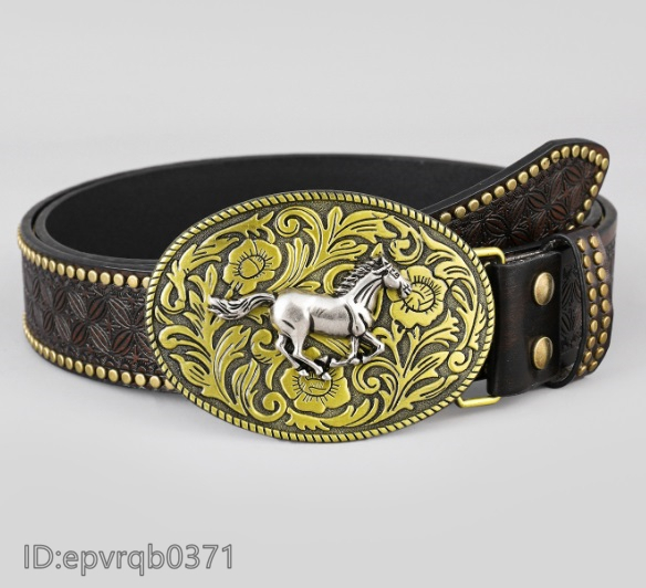> ベルト◆新品 メンズ レザーベルト ピンバックル式 馬バックル 柄物 革ベルト ポンチ付き 長さ調整可能 シルバー/茶
