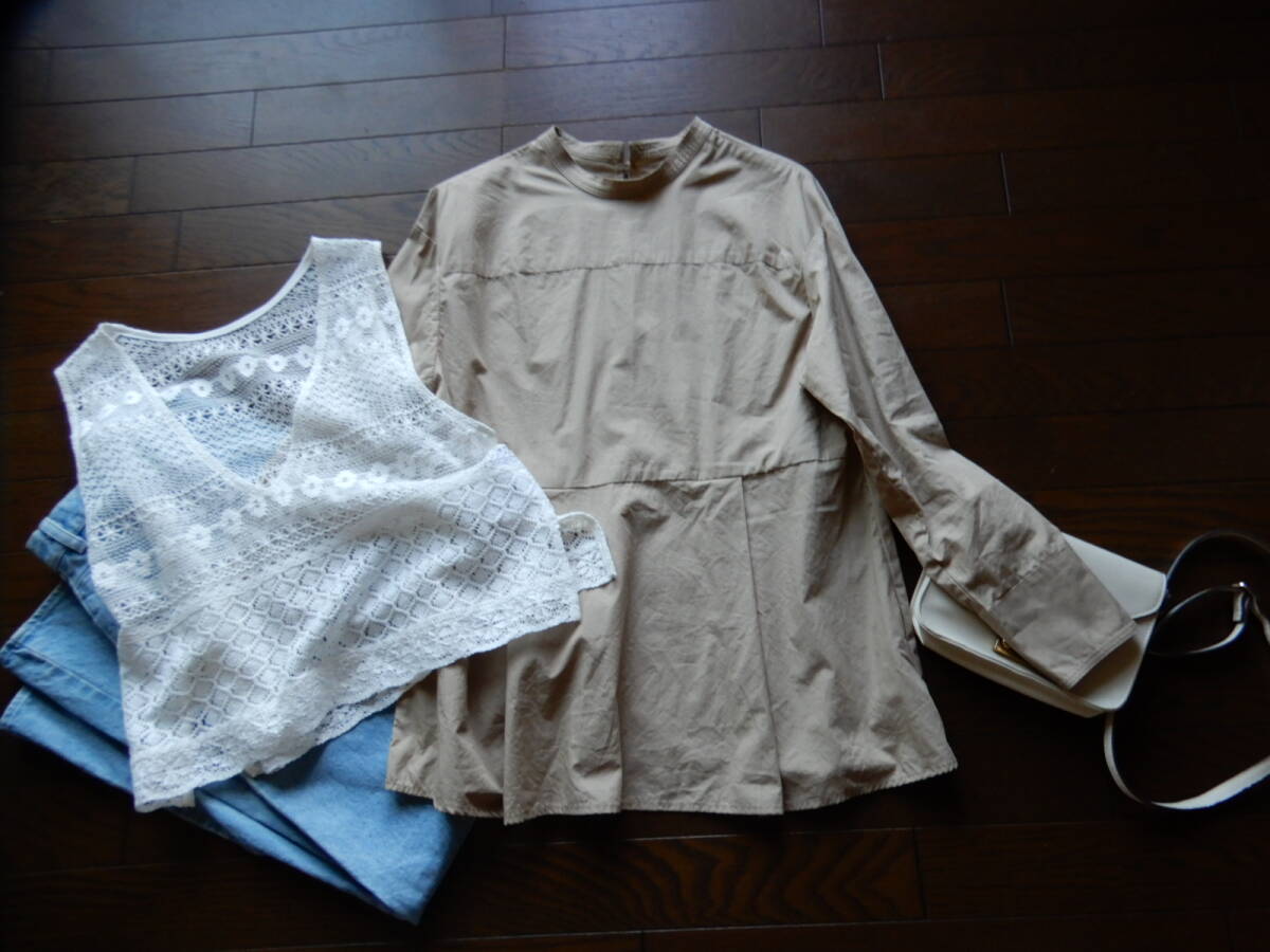 - 【SIMPLICITE/シンプリシテェ】’23 レースベスト付きセット大人可愛いコットン長袖ブラウス ベージュ・白 手洗いok IENA・スピック